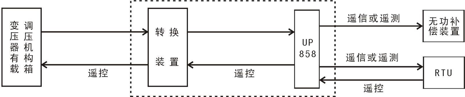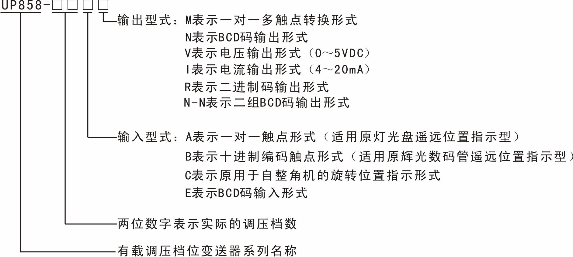 可根据不同用户的要求或不同型号的分接开关操作机构,变换 UP858 系列产品的输入量,即可以是原灯光盘或数码管的多路滑档触点信号,也可以是原自整角机的旋转位置改制的角度传感信号或不同阻值的电阻信号,输出量可以是经高度隔离转换后的无源触点一对一信号,也可以是 BCD 码信号,二进制编码信号或电压输出信号。特别是电压输出型,综合自动化装置的 RTU 只需将它作为一个遥测量来对待,仅需进行标度转换后显示相应的整数值即可。这种方式连接电缆最少,接口简单,电压分档识别余度大,输出转换稳定可靠。可与遵仪长征、吴江、上海华明开关厂、德国 MR 和瑞典 ABB 等多种型号的有载调压分接开关的操作机构进行电气连接应用,由于此种仪器小巧,多功能,不仅适用于变电站改造更新,而且在设计新变电站时可省去专用的调压控制屏。因此,UP858 系列主变压器有载调压档位变送器产品是当前有载调压、控制、显示、遥讯最为理想的更新换代产品。