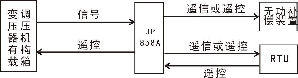 可根据不同用户的要求或不同型号的分接开关操作机构,变换 UP858A 系列产品的输入量,即可以是原灯光盘或数码管的多路滑档触点信号,也可以是原自整角机的旋转位置改制的角度传感信号或不同阻值的电阻信号,输出量可以是经高度隔离转换后的无源触点一对一信号,也可以是 BCD 码信号,二进制编码信号或电压输出信号。特别是电压输出型,综合自动化装置的 RTU 只需将它作为一个遥测量来对待,仅需进行标度转换后显示相应的整数值即可。这种方式连接电缆最少,接口简单,电压分档识别余度大,输出转换稳定可靠。可与遵仪长征、吴江、上海华明开关厂、德国 MR 和瑞典 ABB 等多种型号的有载调压分接开关的操作机构进行电气连接应用,由于此种仪器小巧,多功能,不仅适用于变电站改造更新,而且在设计新变电站时可省去专用的调压控制屏。