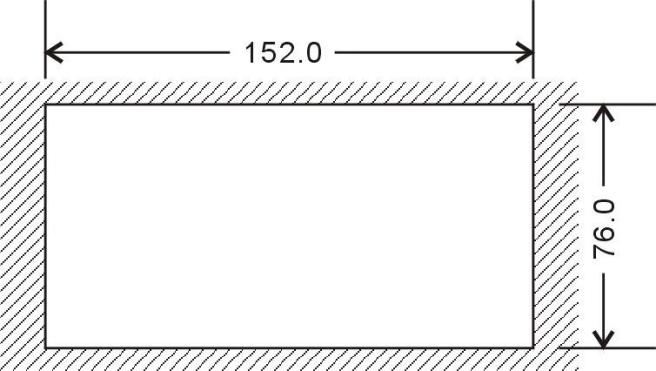 1)控制屏上开 152×76mm 矩形孔(如图 1),将产品从正面装入孔内,将固定支架从仪表后面两侧固定。