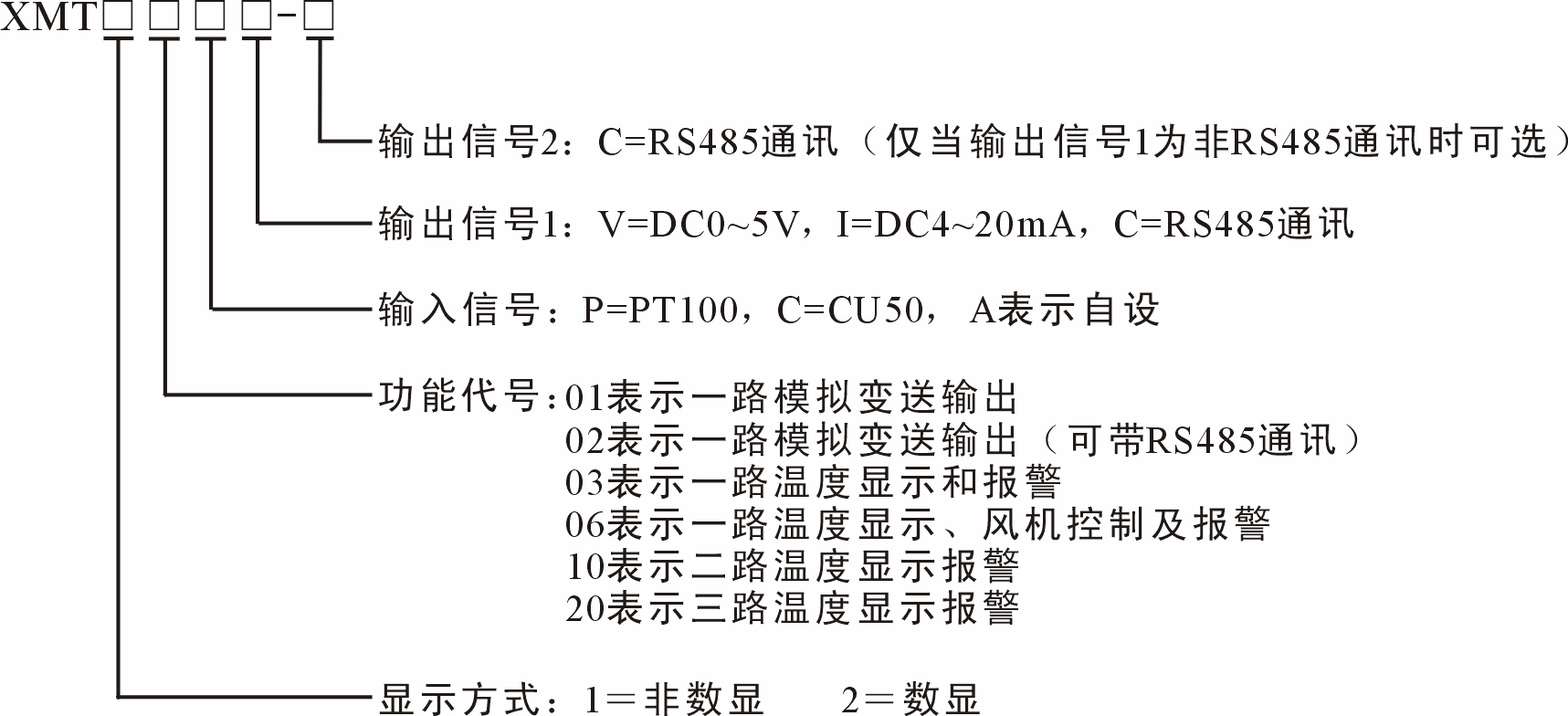1)传感器形式:PT100/CU50